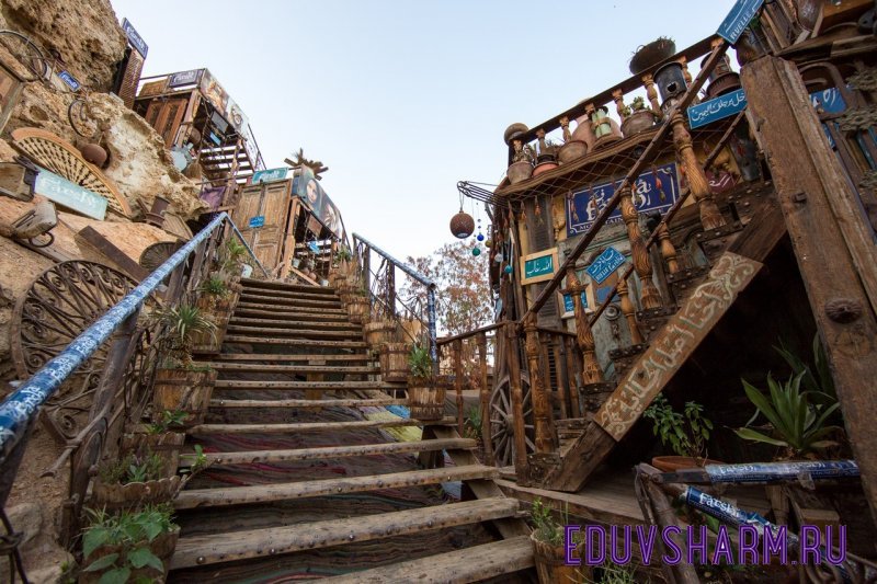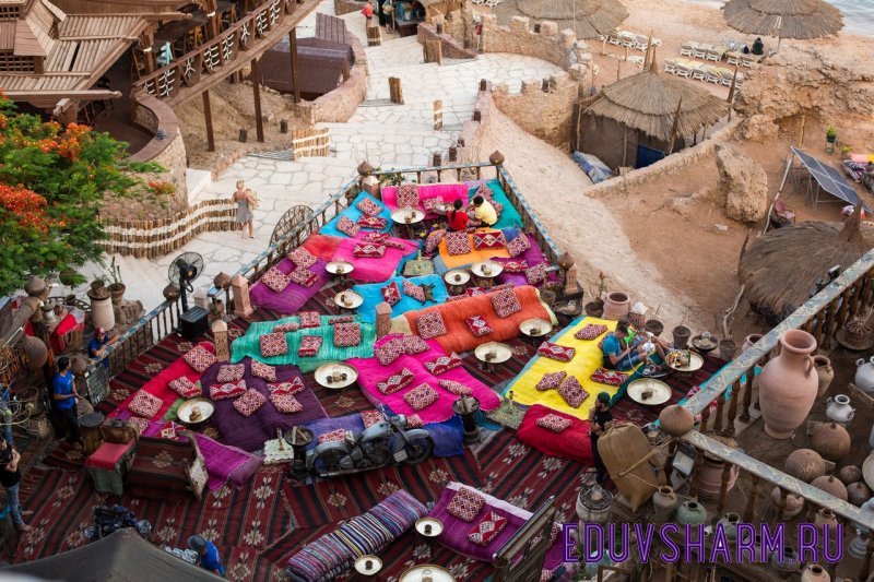 Кафе фарша по мнению нашей команды самое крутое Chill Out кафе в Шарм Эль Шейхе. Построено оно каскадами на обрыве в старо восточном стиле. Повсюду картины и предметы антиквариата.